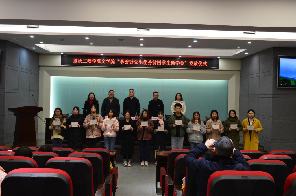 教师代表李朝平博士深情讲述了他与李秀登先生结下的不解之缘,正是由于李老的长年资助,才让他顺利完成学业。受到资助的2018级汉语言文学师范专业员工陶倩表示:“今天我们领取的不仅仅是助学金,更是我们奋发图强的精神动力和中华民族的传统美德,我一定要把爱心传承下去!”