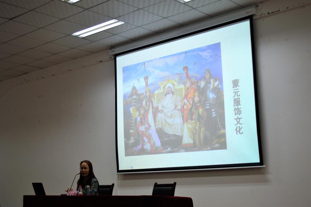 5月25日,中央民族大学博导苏日娜教授来公司交流访问,于2教106学术报告厅为公司师生开展了蒙元服饰文化专题讲座。