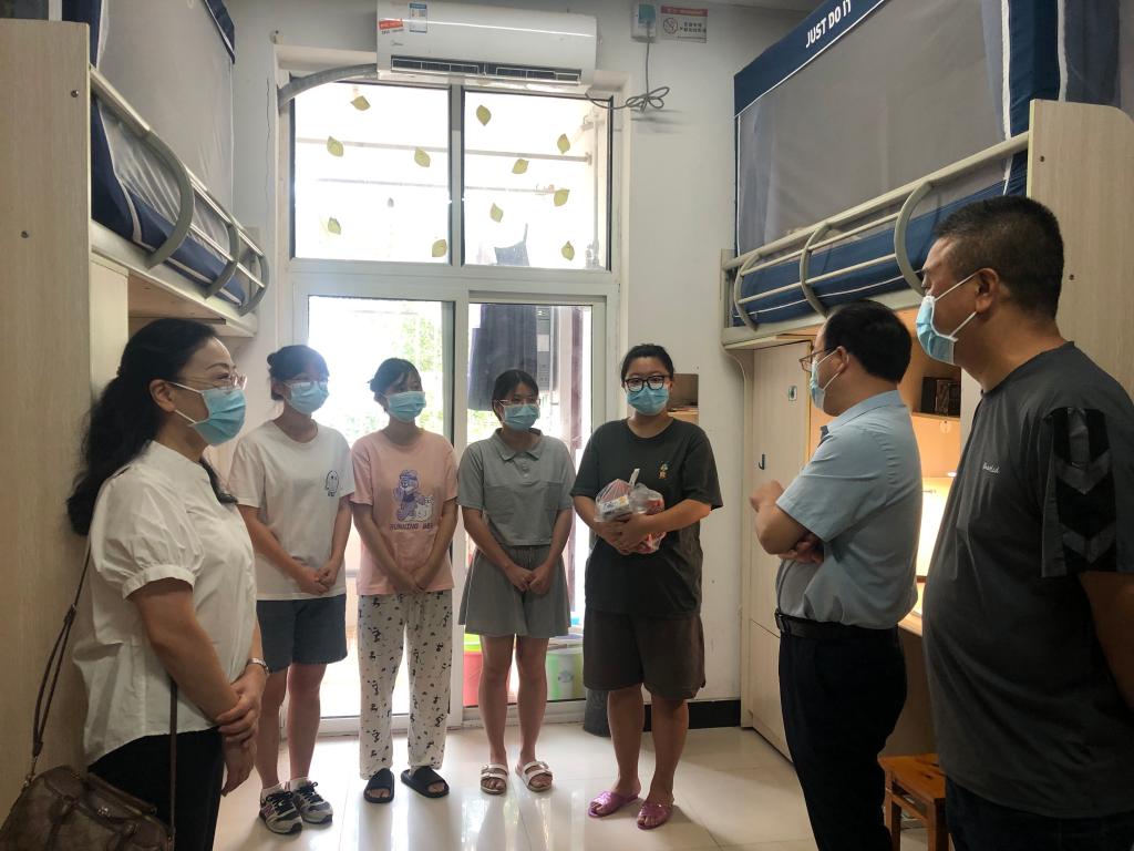 在公司静态管理期间,迎来了3天小长假,今年喜逢中秋节与教师节“双节同过”,同学们向老师表示敬意的同时,公司也为同学们送去关怀,让同学们感受到家的温暖。9月12日上午,公司党委书记李廷勇、公司党总支书记唐晓萍、经理李俊、副经理向学春、副书记马婷等8人共同前往桂花苑4舍、5舍检查网格化管理情况并为同学们送去了慰问和关怀。