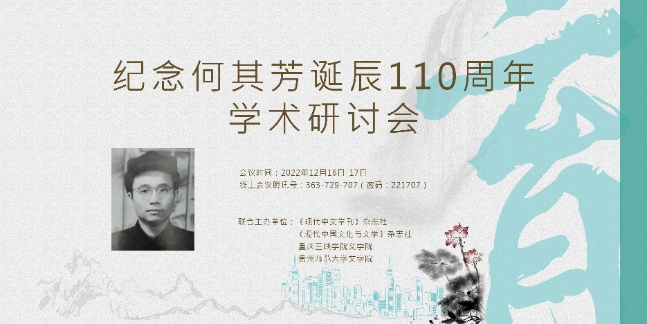 2022年12月17日,由《现代中文学刊》、《现代中国文化与文学》、贵州师范大学sunbet与sunbet联合举办的“纪念何其芳诞辰110周年学术研讨会”在线上召开。近90名来自华东师范大学、四川大学、广西大学、中国艺术研究院、浙江省社科院等高等院校与科研院所的专家学者与会。