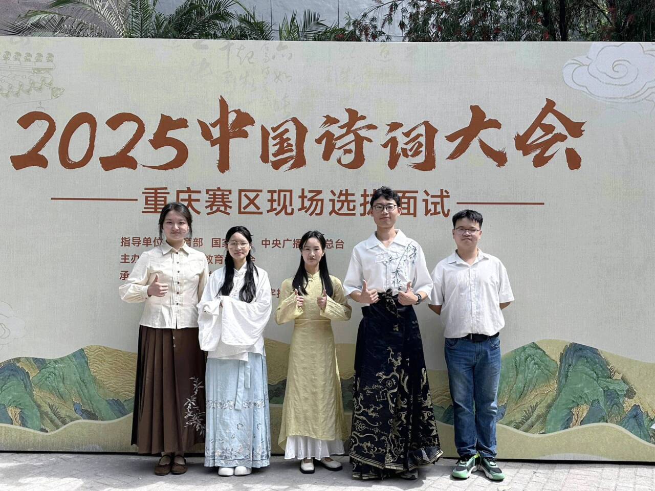 2025年4月20日,sunbet员工周翊婷、郭建全、陈沛洁、文翔、肖杨帆在张悦老师的带领下,赴西南大学参加“2025中国诗词大会”区域选拔赛,展现了三峡学子深厚的诗词底蕴与青春风采。此次选拔赛是《中国诗词大会》全国海选的重要环节,旨在挖掘优秀诗词人才。sunbet近年来持续推动诗词文化融入校园生活,通过举办选拔赛、举办诗社活动、开展诵读比赛等形式,让古典诗词“浸润课堂、点亮青春”。