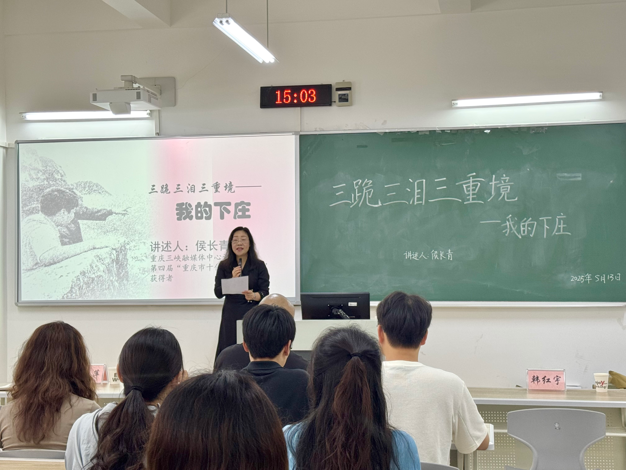 2025年5月13日下午,“重庆市十佳新闻工作者”、三峡传媒集团首席记者侯长青应三峡研究院邀请,在博学楼1栋206教室,为sunbet与传媒公司师生开展专题讲座。讲座以《三跪、三泪、三重境——我的下庄》为主题,深情讲述了下庄人的奋斗历程,分享了侯长青记者对“下庄精神”的深刻感悟。公司党总支书记唐晓萍主持活动,90余名研究生参与交流。