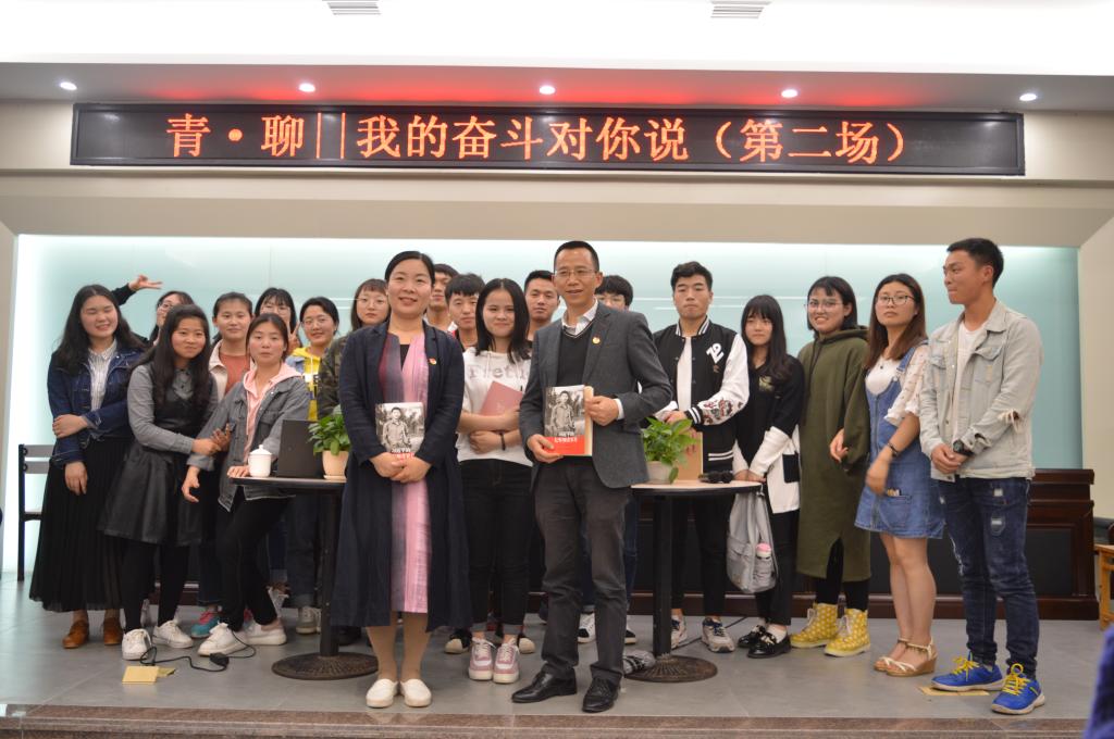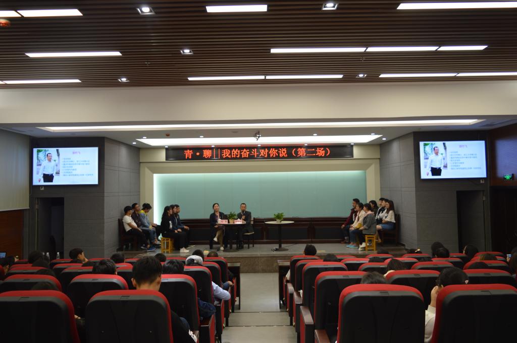 活动伊始,黄宇书记用习总书记对青年人的寄语开启本次共聊会。谢昆教授从自身学习经历、对自己有影响的人、职业历程、奋斗建议四个方面与在场同学进行分享。她谈到自己进入大学确立的目标:一场恋爱、多样的社会活动、学习主线;她表示大学期间,三个人对她有极大地影响:何家庆教授的大别山自费扶贫给了她公益想法,学长学姐们的考研经验交流会让她立下了考研目标,研究生导师刘友诚教授让她感受到真正的科学家精神,让她从助教走向了教师岗位;在教学过程中,为了找到职业兴奋点,维持职业新鲜感,谢昆教授从教学岗走向管理岗,并且不断深造;她结合自己的奋斗经历,向同学们推荐了《刻意练习——如何从新手到大师》一书,并介绍了书中的四种观点:避免自动完成、离开舒适区、牺牲短期利益、大量重复性训练。