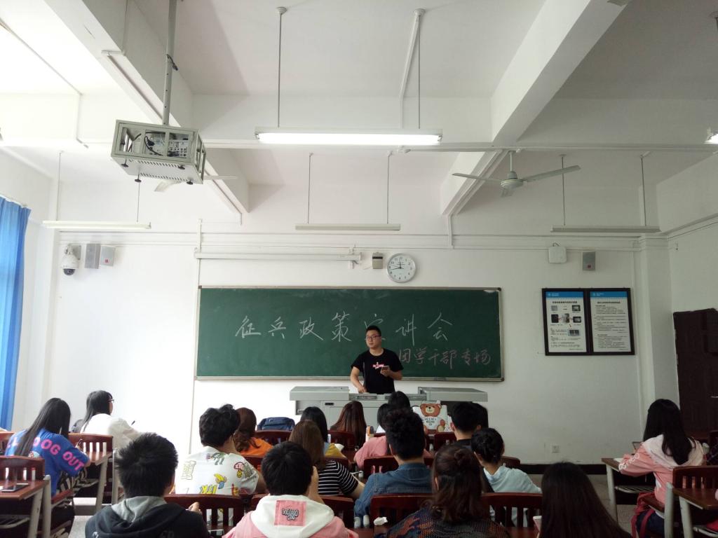 5月2日中午12:00,公司于1教312举办了团学干部专场征兵政策宣讲会。会议由公司员工会主席谢宽主讲,公司各团学干部参加。
