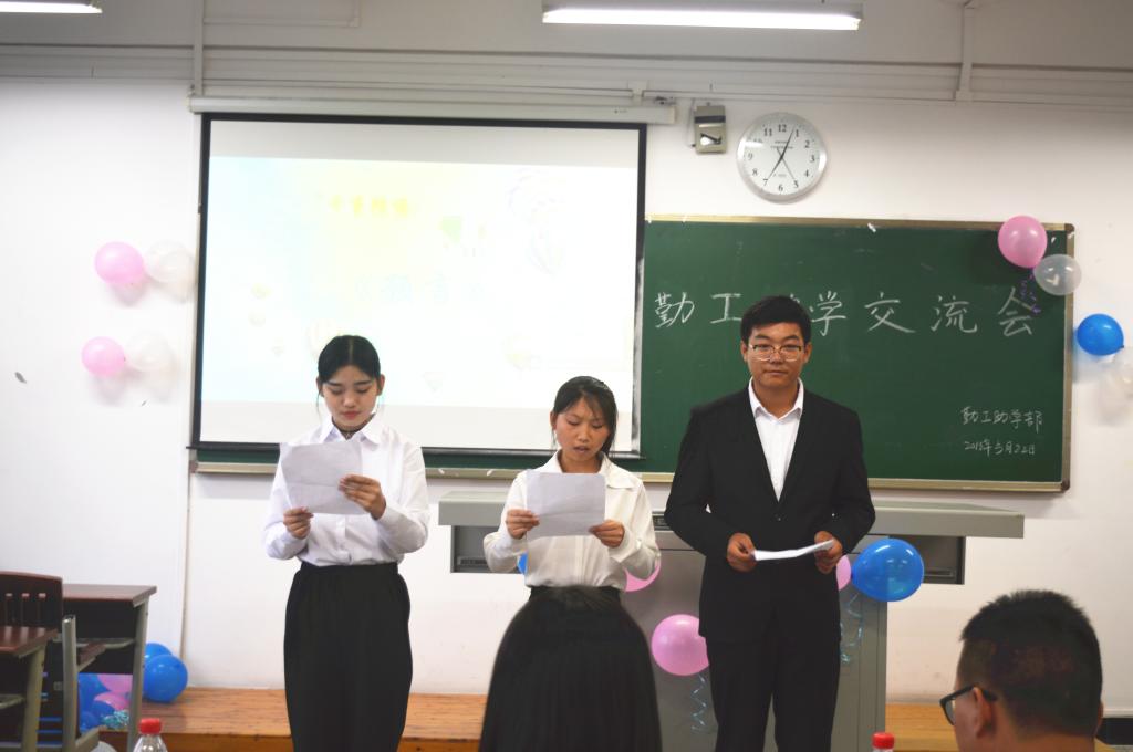 谢宽同学与曹仁玉同学在此次交流会上也发表了自己的感言。曹仁玉同学分享了自己任助学主任这一年的成长感悟和一些小经验;谢宽同学则将自己在员工会中的收获概括为两点,一是“不一般的体验”,二是“不同的平台有不同的交际圈”,他希望同学们努力变成更好的自己。