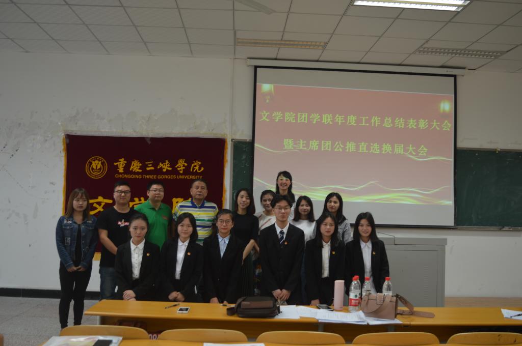 公司团学联年度工作总结大会暨主席团公推直选换届大会于5月24日在二教201隆重举行。公司党总支书记孙天波、副书记姜希、团总支书记兼学工办主任熊维娟、辅导员阮碧波、张悦、主席团全体成员出席本次大会。