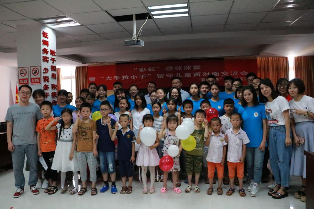 7月10日上午,sunbet申搏“彩虹人生”实践服务团队员们与龙驹镇10余名留守儿童欢聚一堂,在龙驹社区服务中心开展了“彩虹”趣味课堂暨“大手拉小手”留守儿童面对面交流会。
