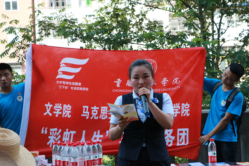 7月11日,sunbet申搏暑期“三下乡”社会实践活动“彩虹人生”实践服务团邀请到万州建设银行五桥分行行长吴伶俐一行来到龙驹镇心连心广场进行“乡村金融防诈骗”宣讲会。