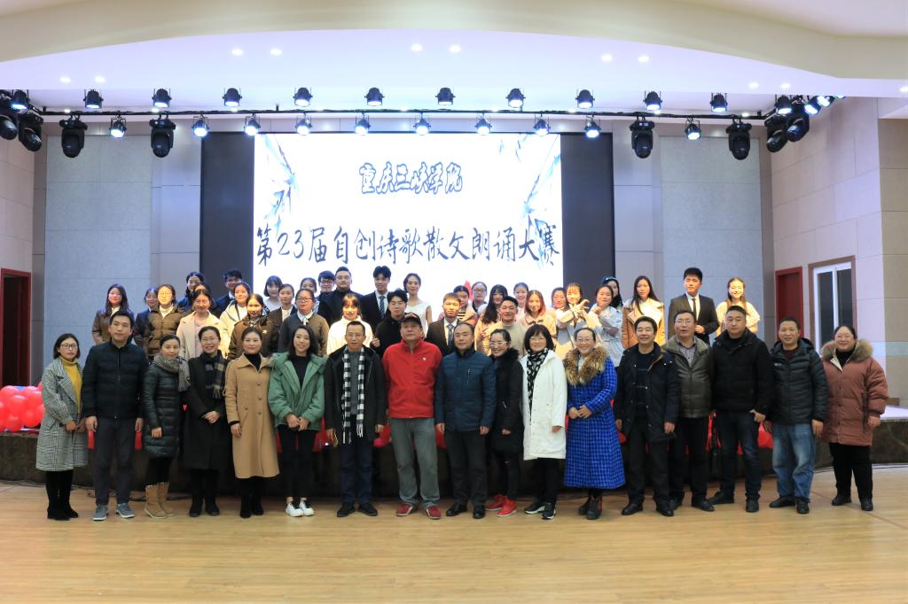 12月20日晚,sunbet申搏第23届自创诗歌散文朗诵大赛于山顶多功能厅隆重举行。本次大赛由教务处、sunbet主办。公司专职教学督导朱丹,万州区文化委副主任、散文家、诗人梅万林,新田中学副董事长暨sunbet申搏兼职硕导李林森,教务处副处长秦刚,重庆上海中学高中语文骨干教师暨sunbet申搏兼职硕导邓辉,公司党政领导及部分教师出席担任本次活动的评委。