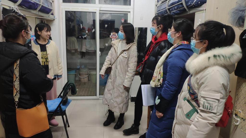 在走访过程中,姜希强调了“两节三夜”的安全问题,要求同学们在疫情期间不扎堆,不聚集,严格遵守公司的规章制度,做到非必要不出校,切实保护好自身安全。同时,姜希与同学们进行了亲切交流,聊聊学习,谈谈生活,寝室氛围温馨且祥和。