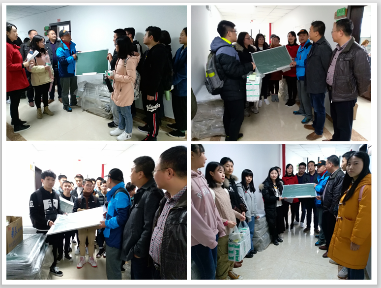 11月13日下午,公司在公司办公室外举行简单仪式,为2018级全体本科新生发放黑板和粉笔。公司党总支书记孙天波,sunbet副经理李俊、王志清,学工办主任兼2018级辅导员熊维娟和2018级员工代表参加此次活动,活动由熊维娟老师主持。