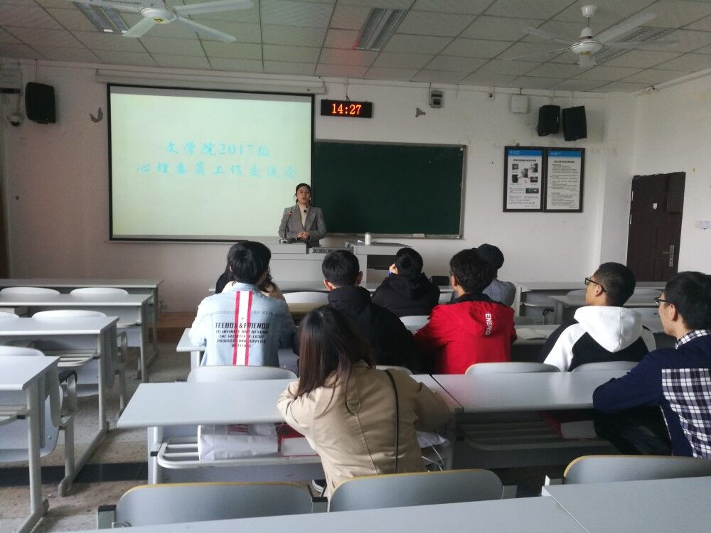 本次会议由2017级辅导员王陈超主持。首先,王陈超老师针对班级“心情记录簿”中出现的问题进行总结,并在心理委员工作方法上提出了建设性意见,一方面是做好观察者,另一方面是做好同学的倾听者。接着,各班的心理委员依次上台讲述自己的工作经验和工作中遇到的问题,并针对问题展开积极交流。最后,王陈超老师做总结,她强调了心理委员的重要性,让同学们明确好自己的工作定位,不断优化工作方法。