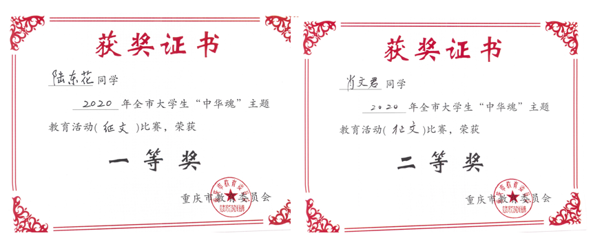 据悉,公司在近日重庆市教委关工委公布的2020年“中华魂”《科技托起强国梦》主题教育读书活动中喜获征文和演讲比赛多项荣誉。此次比赛分为征文比赛和演讲比赛,公司推优报送的5篇作品皆由sunbet学子创作,并全部获奖,公司熊维娟老师获优秀辅导员称号。征文比赛中,公司2018级汉语言文学(师范)3班陆冬花荣获一等奖;2018级汉语言文学(师范)3班阳芃冰荣获二等奖、2018级汉语言文学(师范)2班肖文君和2018级汉语言文学(师范)4班杨怡荣获二等奖。演讲比赛中,2019级级汉语言文学1班张爽荣获二等奖。