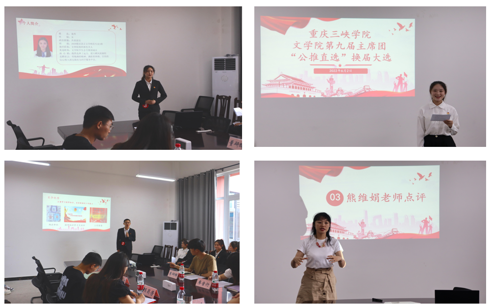 为进一步推动公司团学队伍建设,公司于6月2日在博学楼3栋418室举行团学联第九届主席团“公推直选”换届大会。公司学工办主任、团总支书记熊维娟、2020级辅导员张悦以及公司主席团成员出席本次大会。