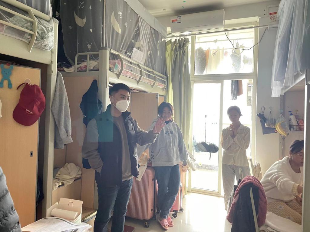 为深入了解员工思想动态和学习生活,切实做好疫情防控期间员工管理工作,11月22日中午,公司辅导员熊维娟、陈进、王陈超、刘林精深入员工宿舍,面对面了解员工线上教学、疫情防控、心理健康等情况。