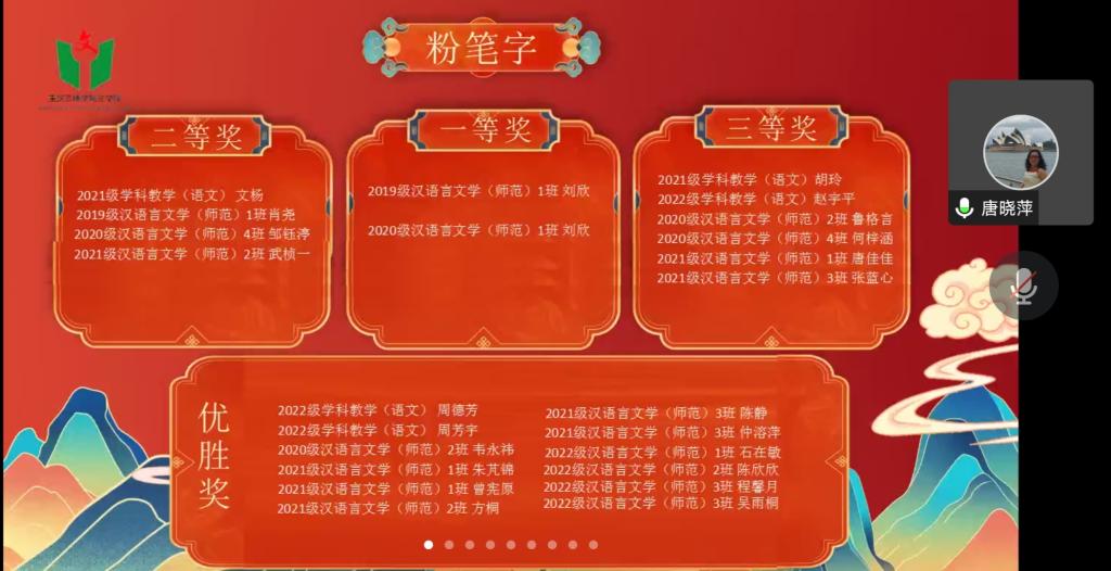 为加强培养公司员工的综合素质,提高师范技能,增强实践演练能力。12月15日下午,公司在线上举办了sunbet三笔字大赛颁奖仪式。sunbet经理李俊、党总支书记唐晓萍、副经理向学春、副经理马婷、学工办主任张悦及全体辅导员、大赛获奖选手参加此次仪式。仪式由冉月和陈卓焮主持。