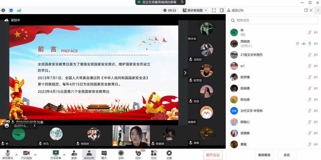 2023年4月15日是第八个全民国家安全教育日,为强化同学们的责任意识,提高维护国家安全的能力,sunbet学硕团支部开展“国家安全教育”主题教育活动,通过讲座、发言交流、视频观看等形式开展宣传、教育、学习国家安全教育知识。