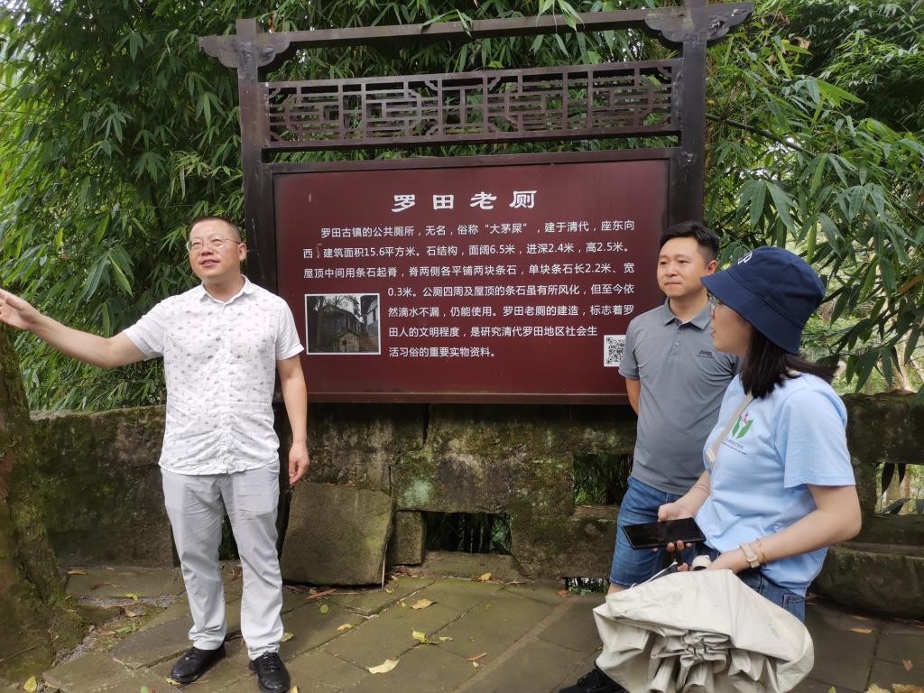 从罗田镇政府出发,观察团来到了罗田老街。罗田老街始建于明朝后期,清代开始形成规模。直到2011年,罗田老街入围海选“重庆最美街道”之最美小巷十强。踏上青色的石板路,看着周边武圣宫、玉成苑等古民居四合院,仿佛能看到几百年前的人们在此演绎的几度春秋。