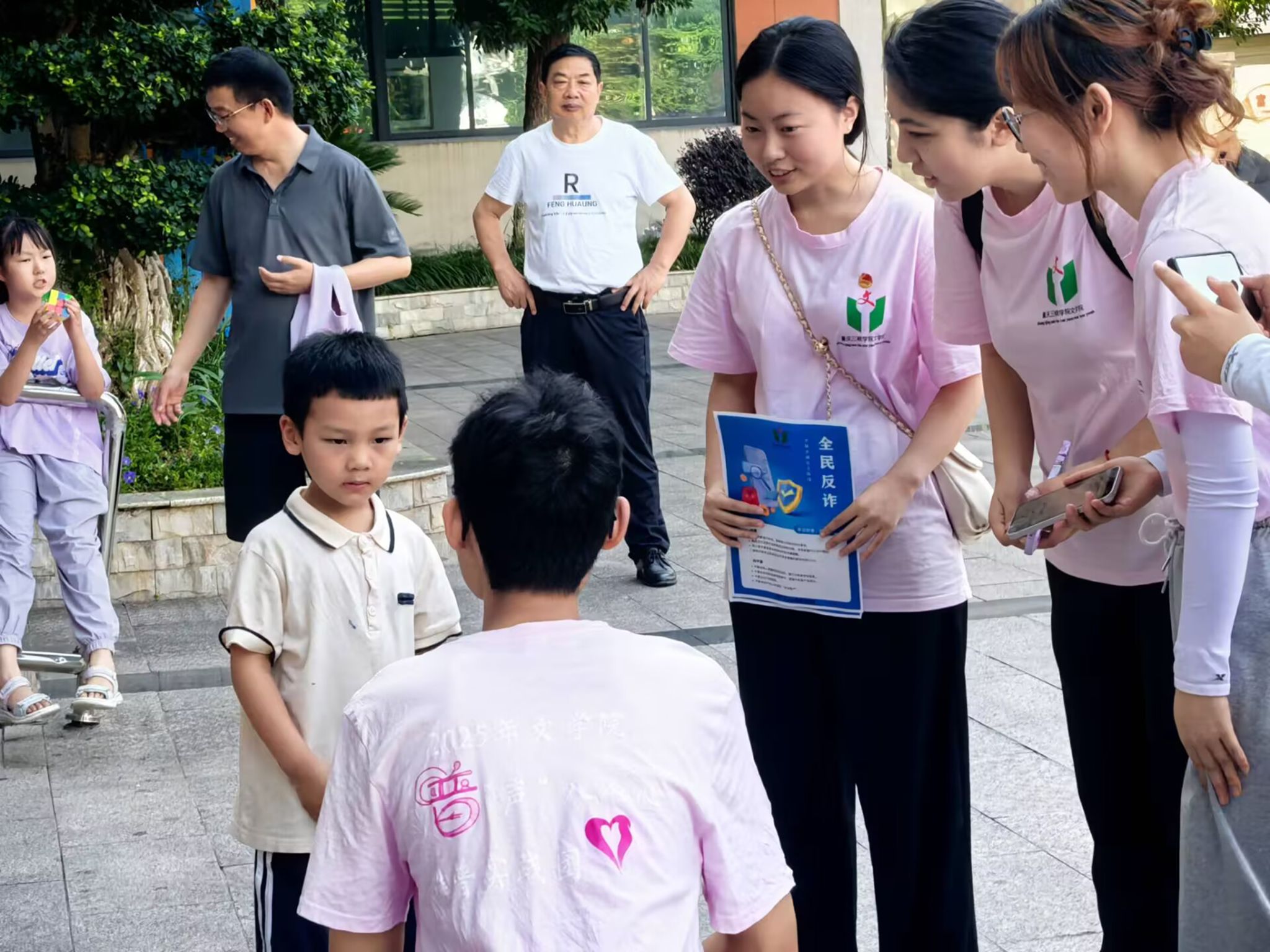 6月29日上午,为增强居民安全防范意识,筑牢社会安全防线,公司老员工暑期“三下乡”“声”入人心推普实践团深入居民广场、大型超市、青少年宫等人群密集区域,开展“防诈骗,防溺水”主题宣讲活动。