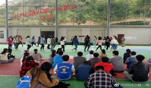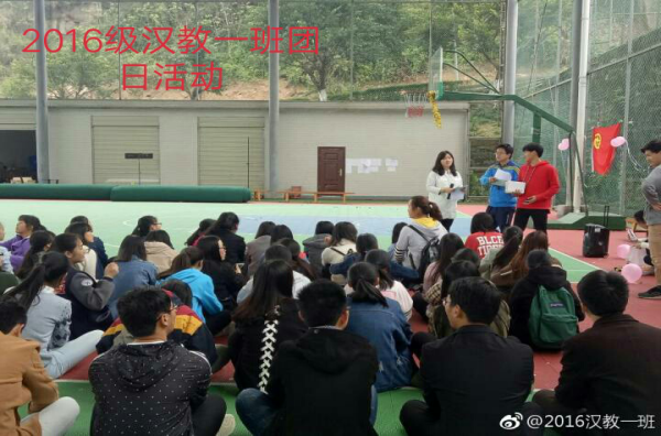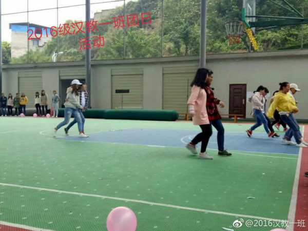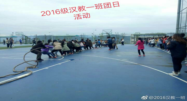 2017年4月11日,2016级汉教一班在公司篮球场举行了“三走”团日活动。活动流程主要有:1.主持人解读三走:走出网络、走出寝室、走出校园2.部分同学才艺表演例如:朗诵、唱歌、跳舞3.进入游戏时刻4.汉文一班和汉教一班进行拔河比赛。