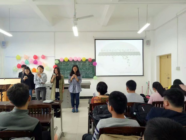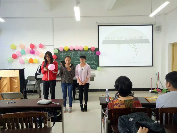 2017年4月21日,小教三班全体同学在山顶声乐教室举行了“中外诗歌诵读与演唱”主题班会。同学们积极参与其中,以小组为单位进行中外诗歌诵读和演唱表演。其中有郑愁予的《错误》,泰戈尔的《the most distant way in the world》,《蝶恋花》的演唱等等。范老师均对每组作了专业的点评和指导。并且范老师为我们讲解了中外诵读的一些历史和技巧,是同学们受益匪浅。