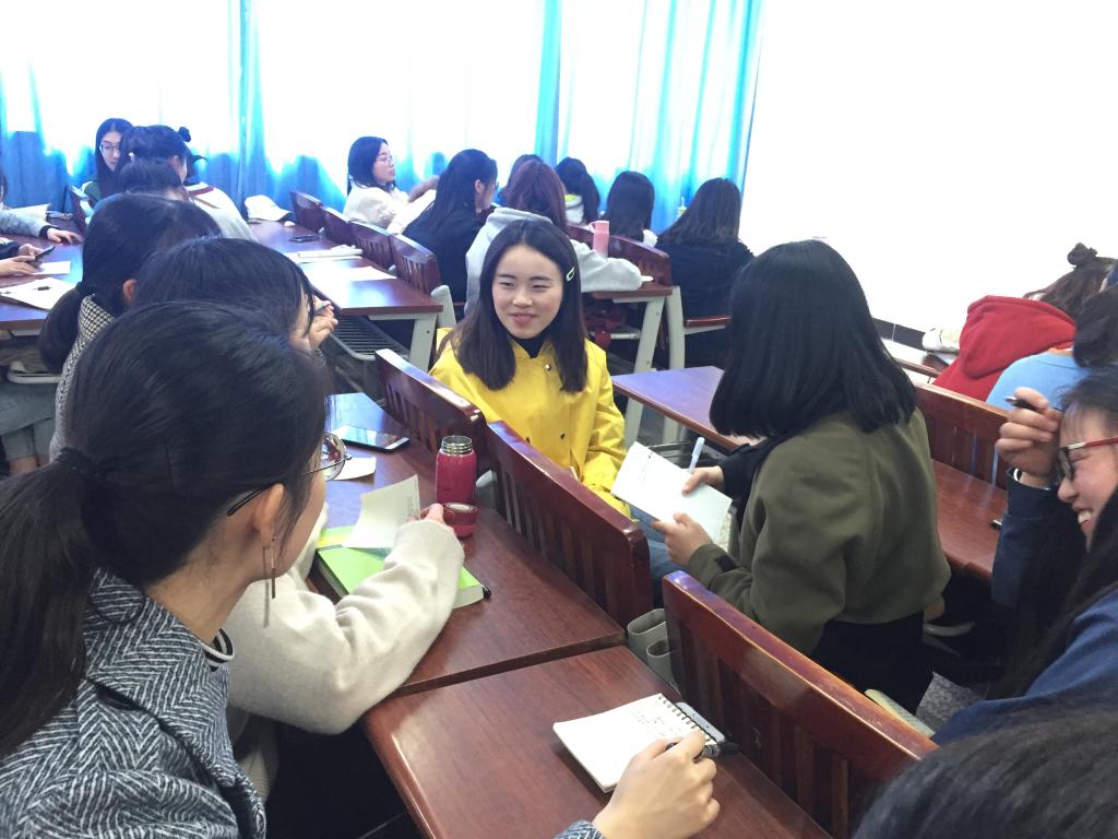 在短暂的讨论后,发展对象作为代表分享经验,讲述了自己从积极分子到发展对象的心路历程:邓琳弋同志主要分享了自身团学经历和对党团事务的认知,并表达了自己对于加入党组织的渴望;游晓清同志则阐述了入党原因和对中国共产党自身的先进性与优秀性的深刻认识;杨巧莉同志从自身经历中认识到自我政治思想的缺乏和不足,期望在不断的学习中坚定理想信念、树立远大理想。