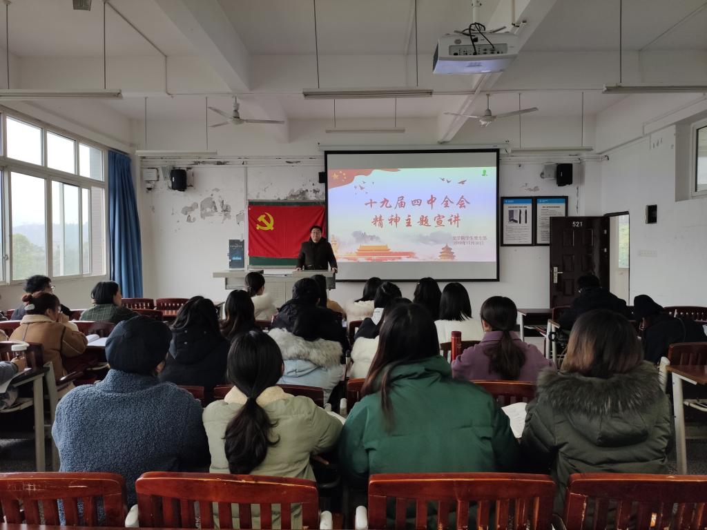 为深入学习十九届四中全会精神,2019年12月30日下午,公司于明辨楼1栋521开展了十九届四中全会精神主题宣讲,参与本次会议的有员工支部书记阮碧波、张悦及全体员工党员。