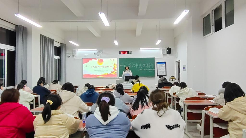 班会上,各团支书带领班级深入学习《中国共产党第十九届中央委员会第六次全体会议公报》《中共中央关于党的百年奋斗重大成就和历史经验的决议》等会议文件精神,深刻领会党的十九届六中全会的重大意义、精神实质,以及一百年来党领导人民创造的伟大成就、党百年奋斗的历史意义、积累的宝贵历史经验等。团支书强调,全体同学们要真正做到学深悟透、融会贯通,并且进一步增强“四个意识”、坚定“四个自信”、做到“两个维护”,为实现中华民族伟大复兴贡献青年的力量。
