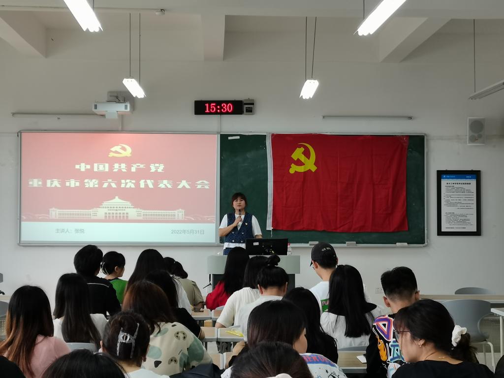 为提高公司党员政治理论修养,坚定理想信念,公司党总支员工党支部于5月31日下午在博学楼1-103开展“中共重庆市第六次代表大会”专题党课学习。本次党课由公司党总支员工第一党支部书记张悦同志主讲,在公司党员参与学习。