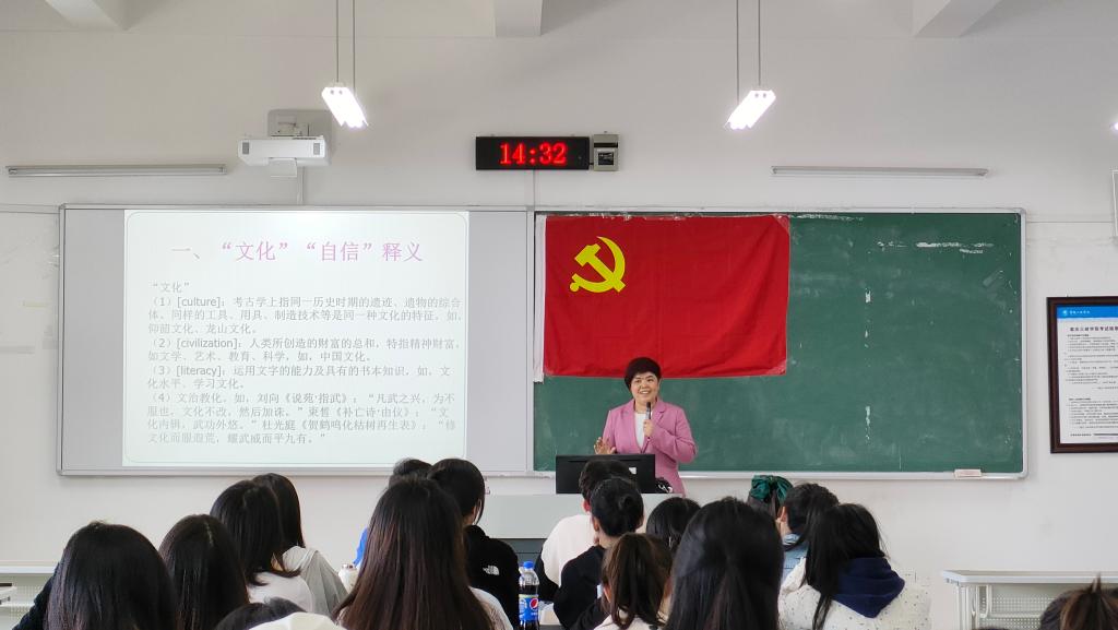 马婷从“文化自信”的释义出发,对“文化自信”的理论内涵、实践指向做出阐述,强调在工作中各位同志应继承优秀的传统文化,既要正确认识自己,也要更好地展示自己,为实现中华民族伟大复兴提供强大的精神动力。