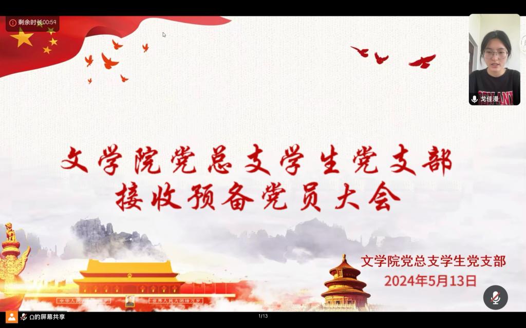 会议开始,支部委员宣布了出席大会的党员人数、会议的主要流程和具体要求。会议严格要求遵守党员的发展规范,按照鲁俊丽、王凯旋等24名发展对象依次对党的认识、入党动机、个人履历、家庭和主要社会关系、现实表现等方面进行个人陈述,并由入党介绍人介绍各同志相关情况,对其能否加入中国共产党表明意见;之后,支部委员报告了综合审查情况,在各发展对象政治历史清楚的情况下,与会各党员同志对发展对象能否入党展开充分讨论,最后进行无记名投票表决。
