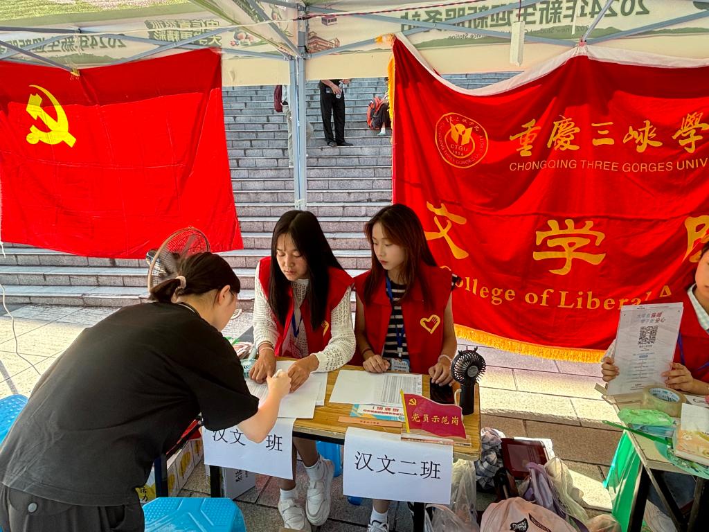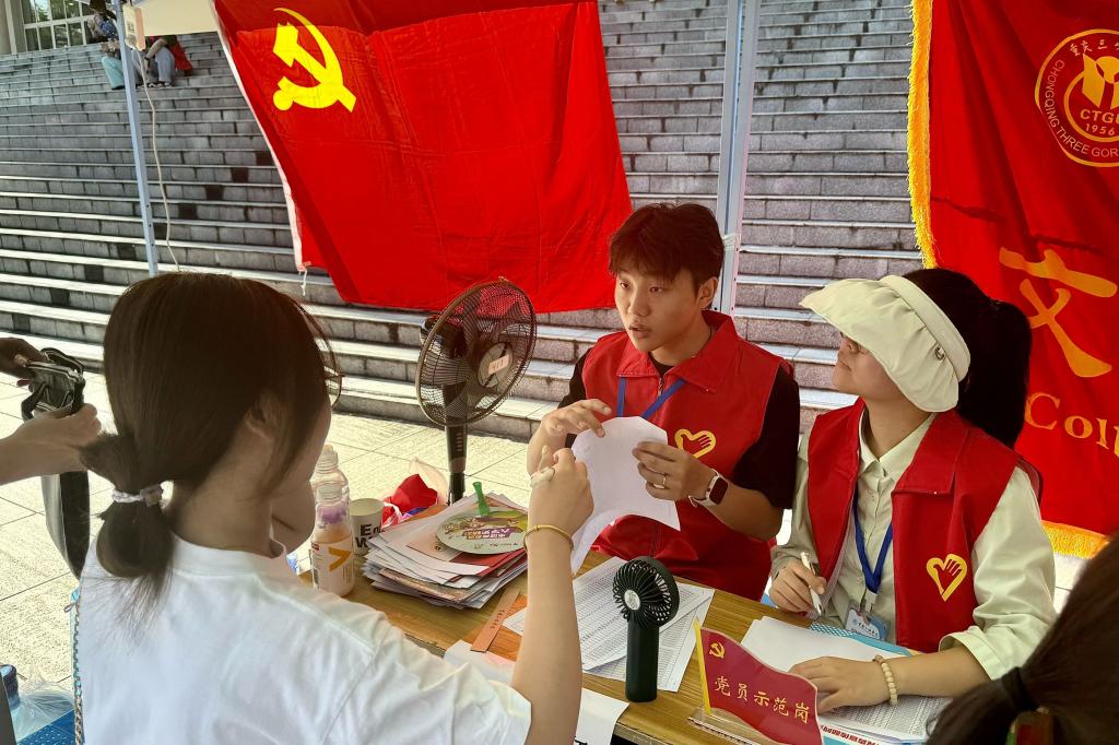 党员志愿者们身着统一的红色马甲,佩戴党徽,开展迎新工作。进入校门、报到注册、办理入住,志愿者们各司其职地帮助各位新生,耐心解答新同学的各方面问题。迎新过程中,处处彰显着党组织对新生的关爱,虽高温难耐,但志愿者们始终保持着高度的热情和责任感,发挥了党员的先锋模范作用。